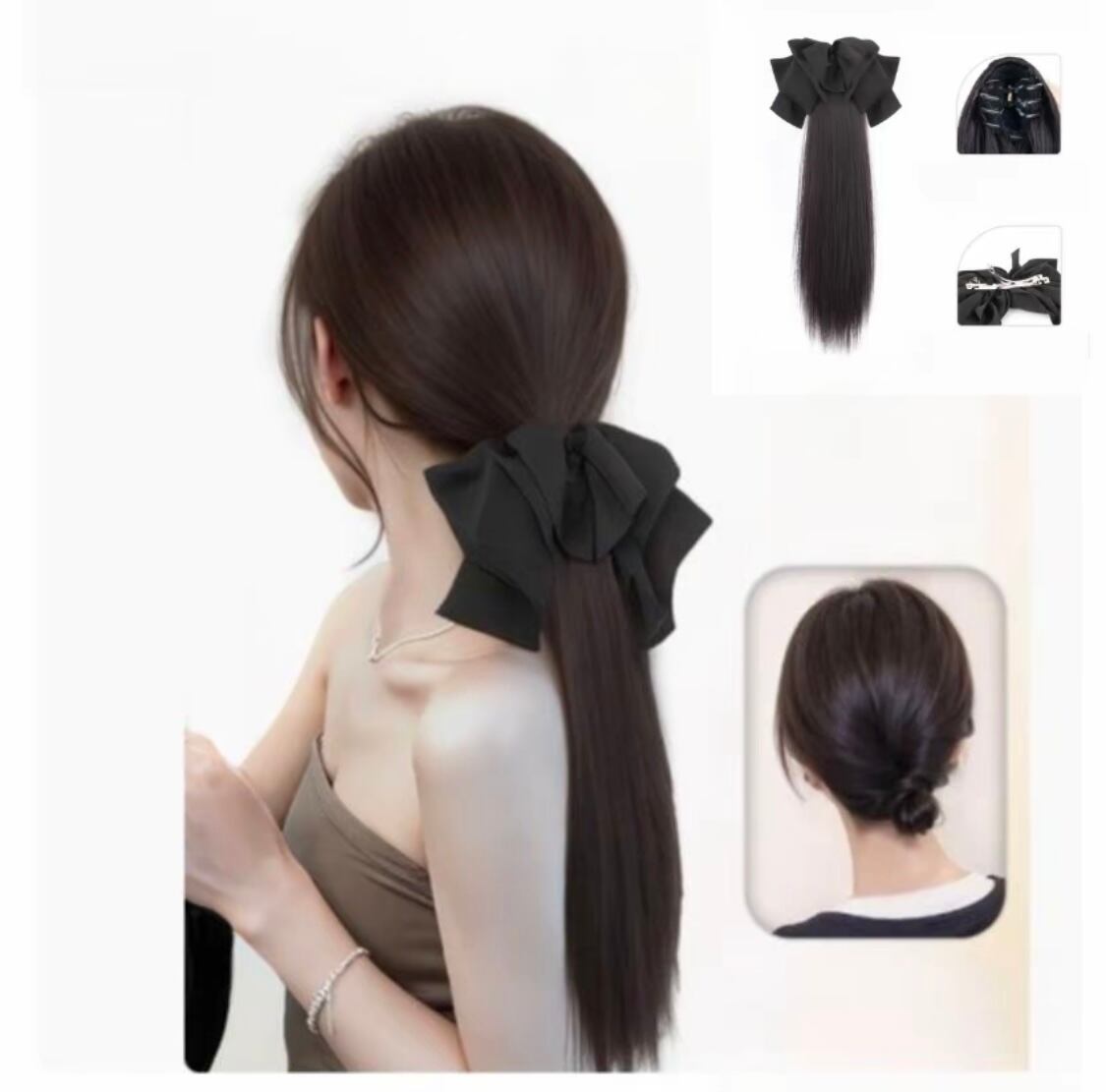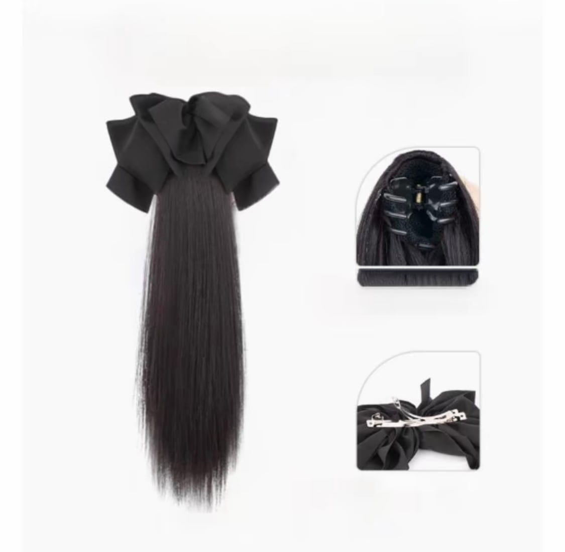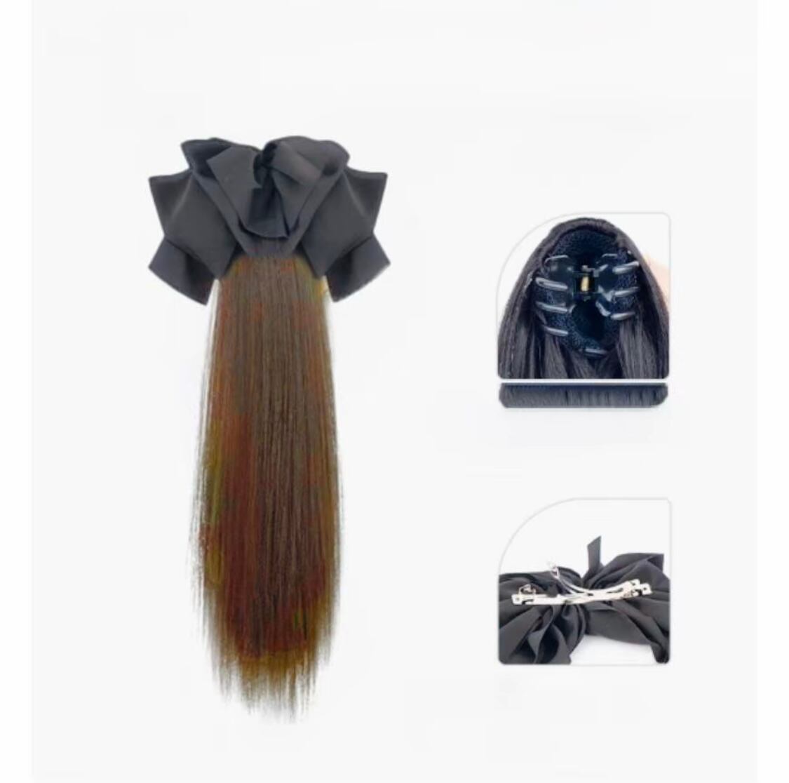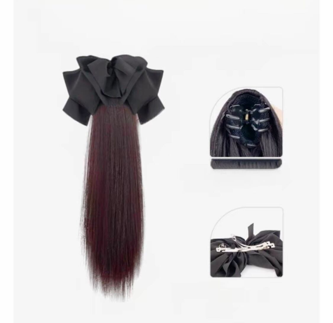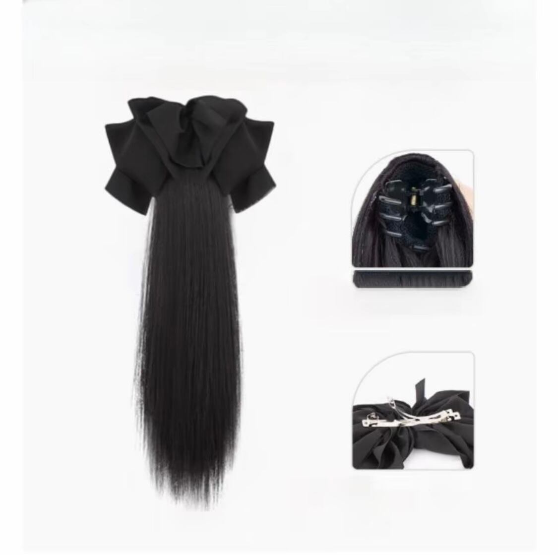 C.137 取り外し可能リボン付き クリップ式ストレート低めポニーテール