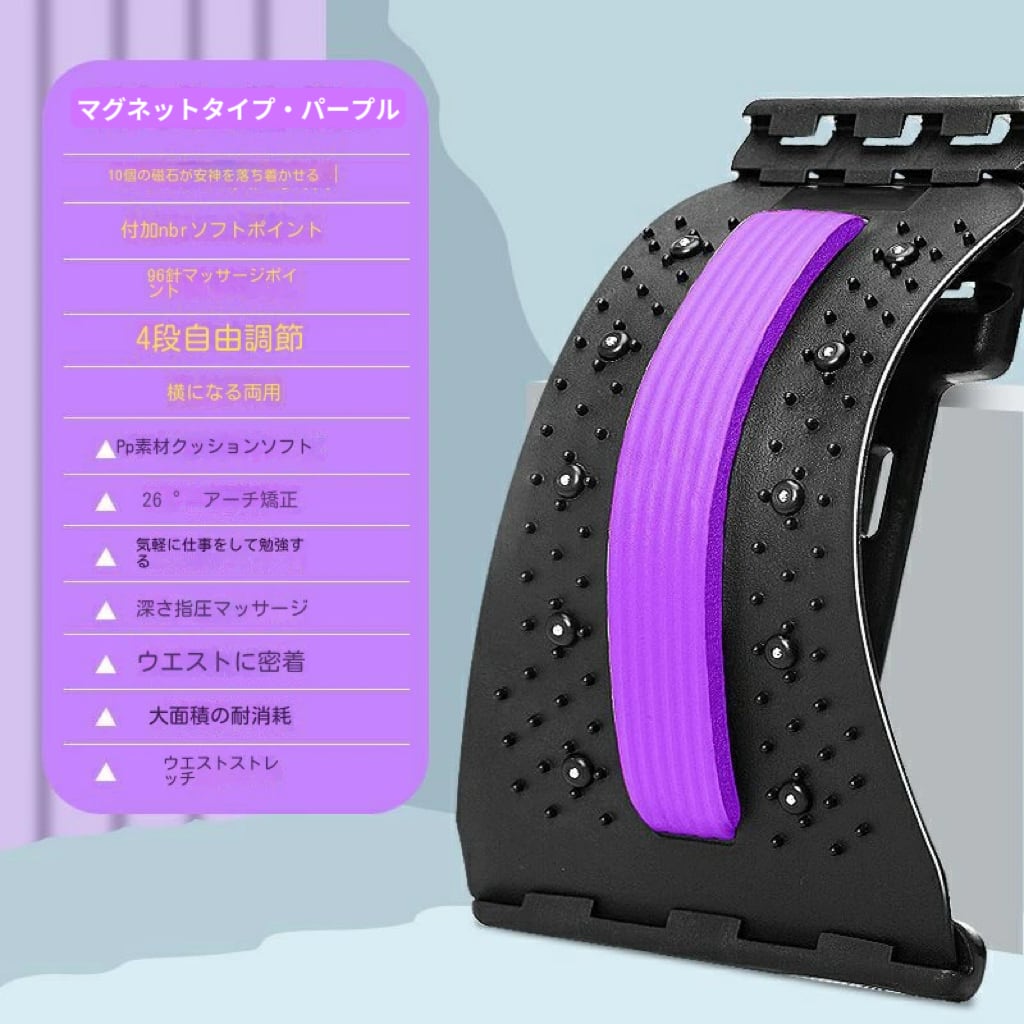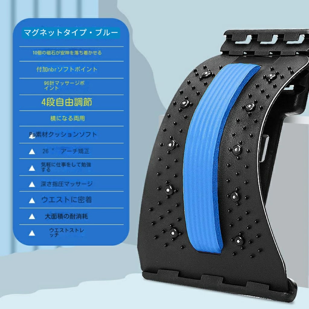 4つの異なる角度で体験をカスタマイズし、坐骨神経痛や腰痛の緩和に最適です。 最大限の効果を得るために、1日2回、5~10分間横になってリラックスしてください。 NBR フォームストリップがさらなる快適さを提供します。